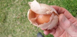 Posted on 01/03/201916/04/2019 by Joanne EvansComplete Egg within an egg shell….. One of our pullets laid this amazing egg today – an egg within an egg…..